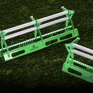 Разметку на спортивное поле можно нанести двумя способами: Первый — это нанесение специальной полиуретановой краски. Такой способ довольно прост и экономичен, но срок эксплуатации очень маленький. Способ второй — врезка разметки. В поле врезается та же искусственная трава, но белого цвета. Данный процесс требует больше труда, но зато разметка нанесенная таким способом прослужит ровно столько же, сколько и само поле. Очень важно разметку на спортивное поле наносить только после склеивания искусственной травы.